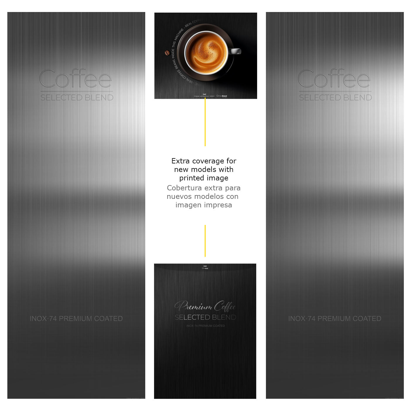 Laterali: Vinile adesivo stampato e laminato antigraffio con finitura opaca.